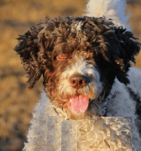 Pet Description:Brown and white labradoodle looking large dog, no collar, very scared, would no let us get close to him. The photo is and EXAMPLE only; it is not that curly but same markings. |