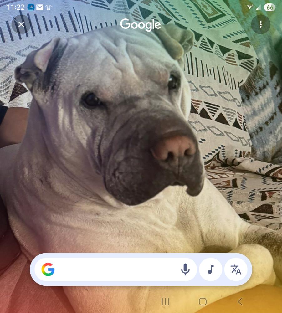 Pet Description:Med to large dog. Dirty white color. Looks mean but is a sweet dog. |