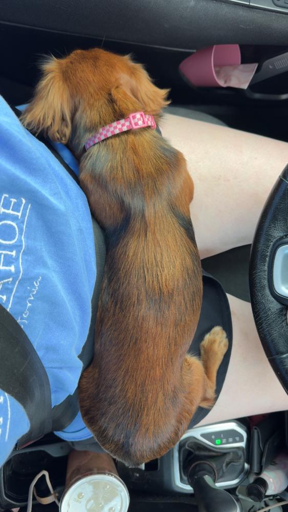 Pet Description:Winnie is a 9lb Miniature Dachshund with Reddish-Brown coat and dark brown/black markings on her ears and the sides of her back. She is so sweet and loves attention/affection. She is very, very loved and adored. |