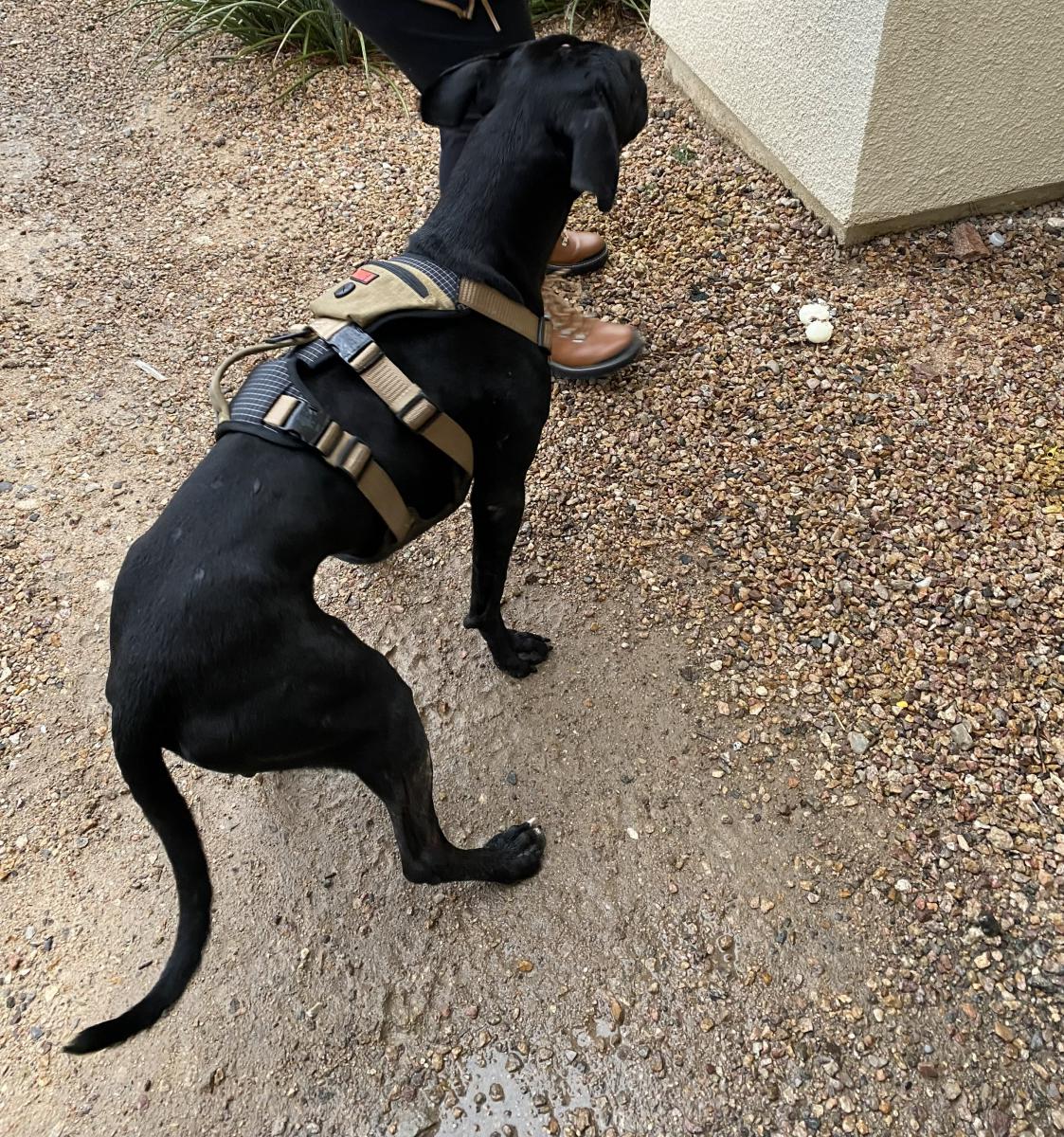Pet Description:Black dog with harness found wandering parking lot. Please contact! |