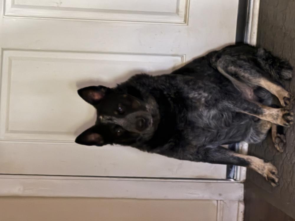 Pet Description:Blue Heeler - salt pepper hair - medium size. |