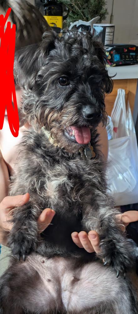Pet Description:Betsy is a 28 lb French bulldog-standard Labradoodle mix. Frenchie size, labradoodle body type/face, small. Friendly but will bark and growl at other dogs, even though she just wants to play. |