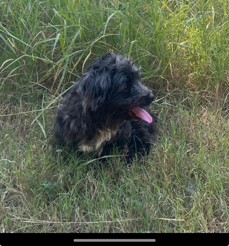 Pet Description:Has black coat with white in the middle . His tail was cut when small. |