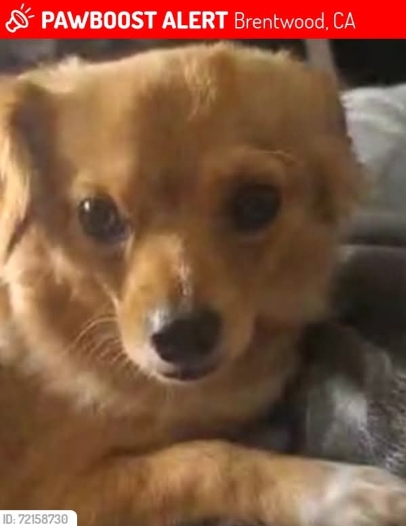 Pet Description:Chihuahua pomeranian mix 1 1/2 years old female she reddish/goldish with white paws and a little white on her chest. She usually hasvon ear up and one down. $500 REWARD |