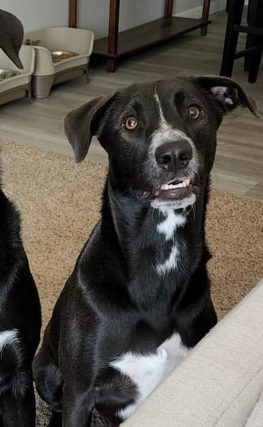 Pet Description:Shelby is a black lab mix with a white patch on her chest and neck and a white stripe down her nose and white and black speckled around her mouth. She is sweet but very timid. |