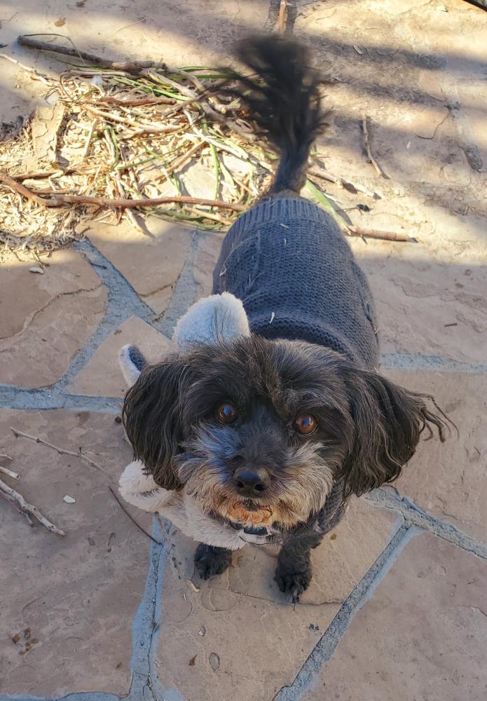 Pet Description:Senior, 14-15 years old, cockapoo, black with a little patch of white along her chest, hazel/brown eyes, responds to Cookie, LAST SEEN WEARING A PINK SWEATER AND PINK COLLAR |