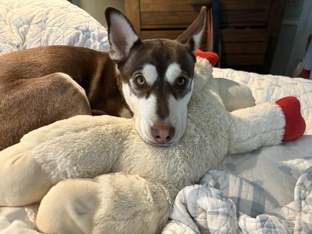 Pet Description:40lb Husky mix.. bandana on her neck and caller pink and whitf |