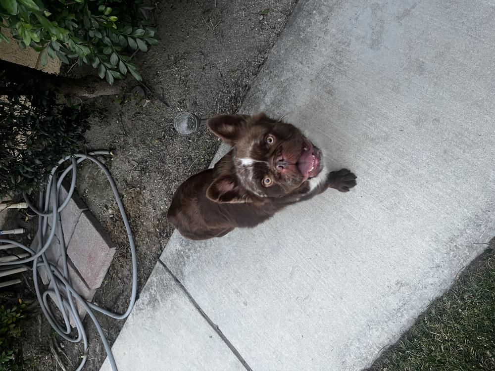 Pet Description:Brownish fur, Long hair frenchie, male with blue collar, no tags, no microchip |