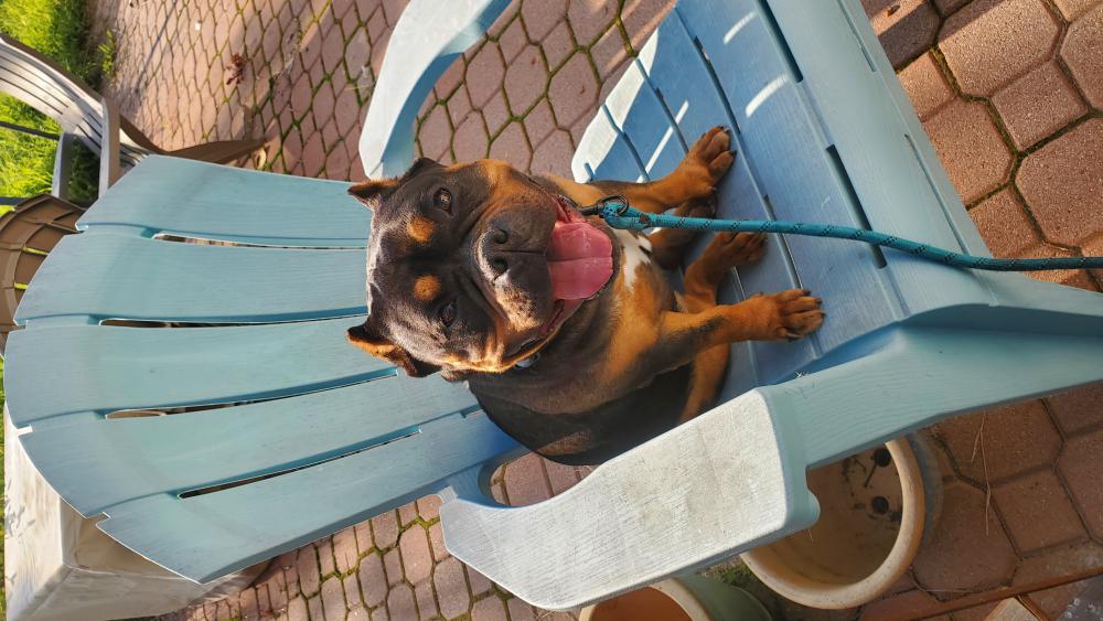 Pet Description:Gender: FemaleSize: Small, but HeavyColors: Black / Brown with White-ChestBreed: Mixed, maybe mixed with Rottweiler / Pitbull / BulldogFeatures: Cropped Ears only (not tail)Behavior: Friendly/Affectionate/Playful |