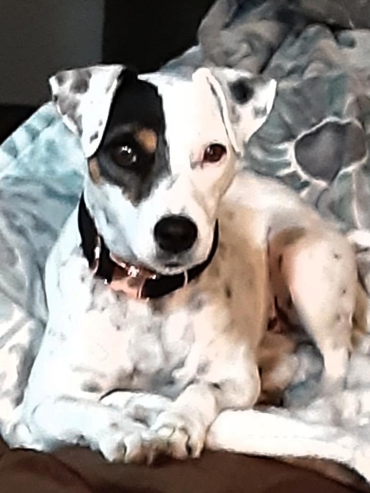 Pet Description:Ivy is a 5 yr old rat terrier, her face is half white and half dark. Her body is white with many black spots. Ears are spotted. |