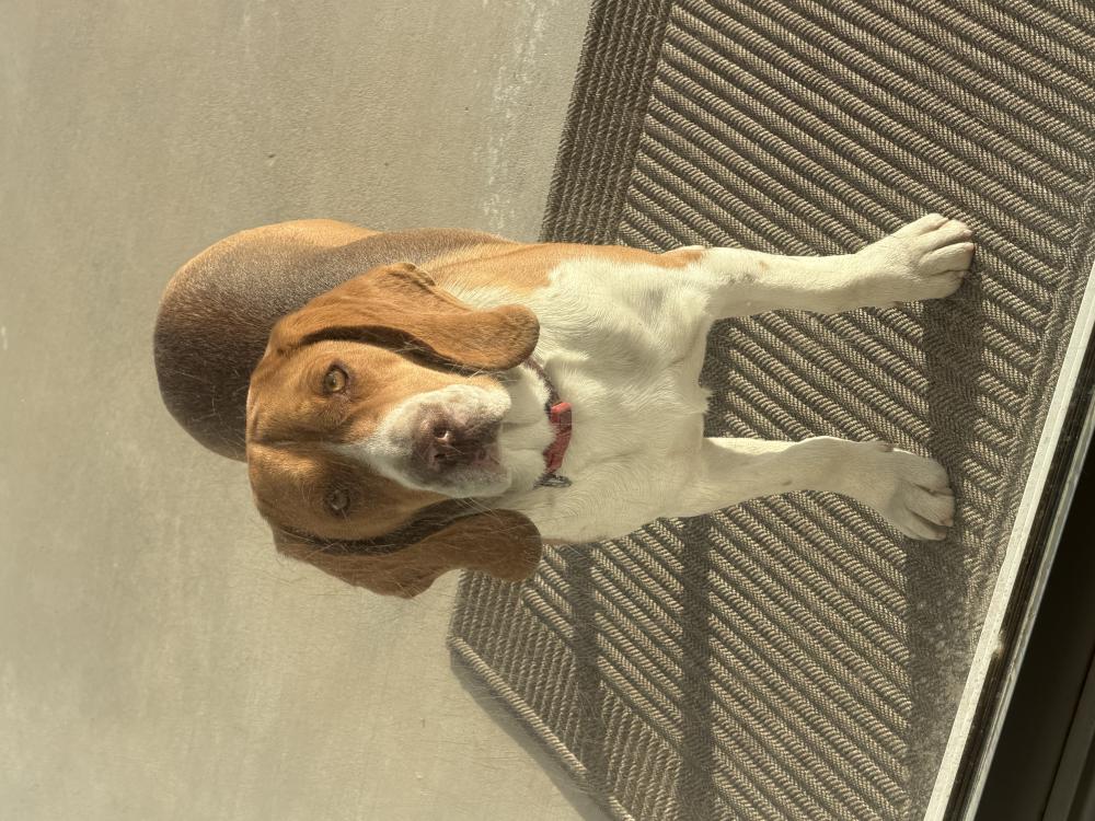 Pet Description:Sweet older boy, golden brown and white short fur, not chipped, collar no tag, wandering streets, maybe beagle mix |