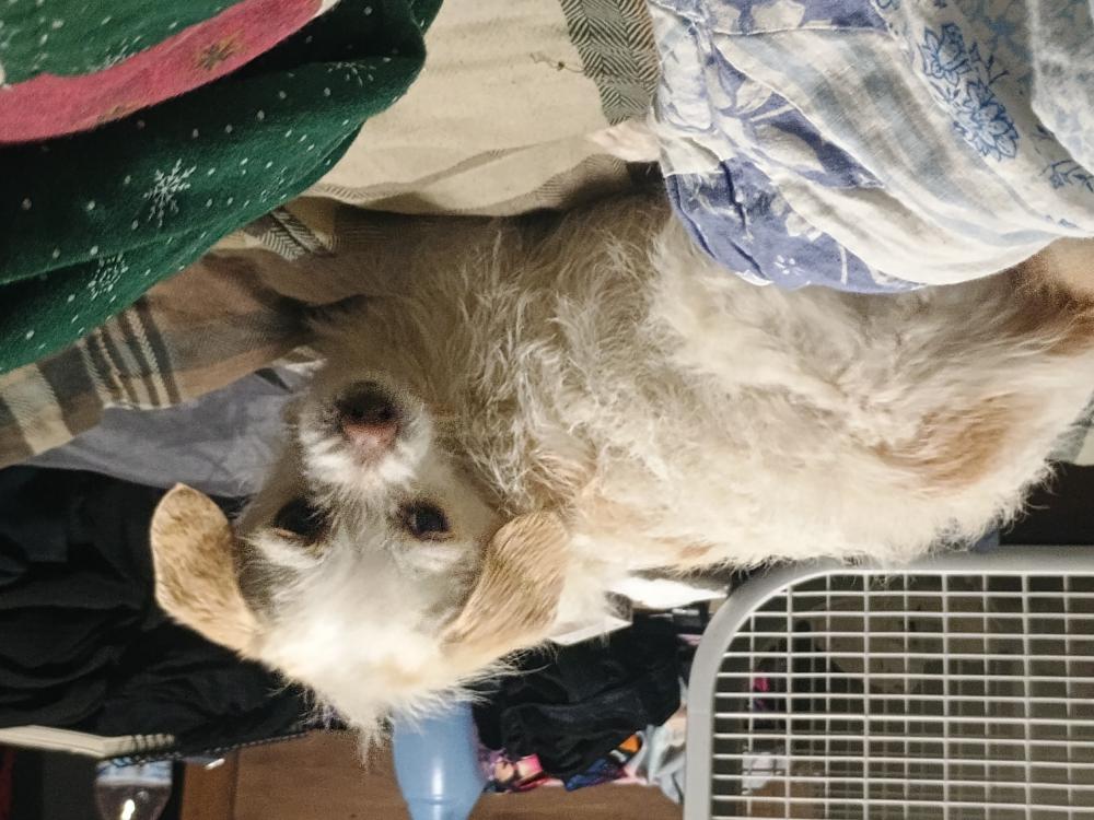 Pet Description:Buddy is white and brown, brown ears with a brown spot near his bottom, scruffy fur small dog brown eyes |