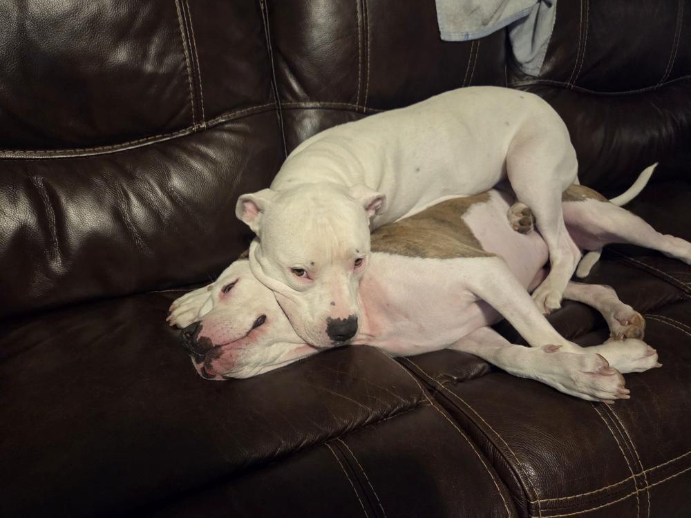 Pet Description:He is a very sweet pit terrior about 4 years old. He is most likely with his sister, a white pit terrior with a few little black spots. Jordy is white with large brindle spots |