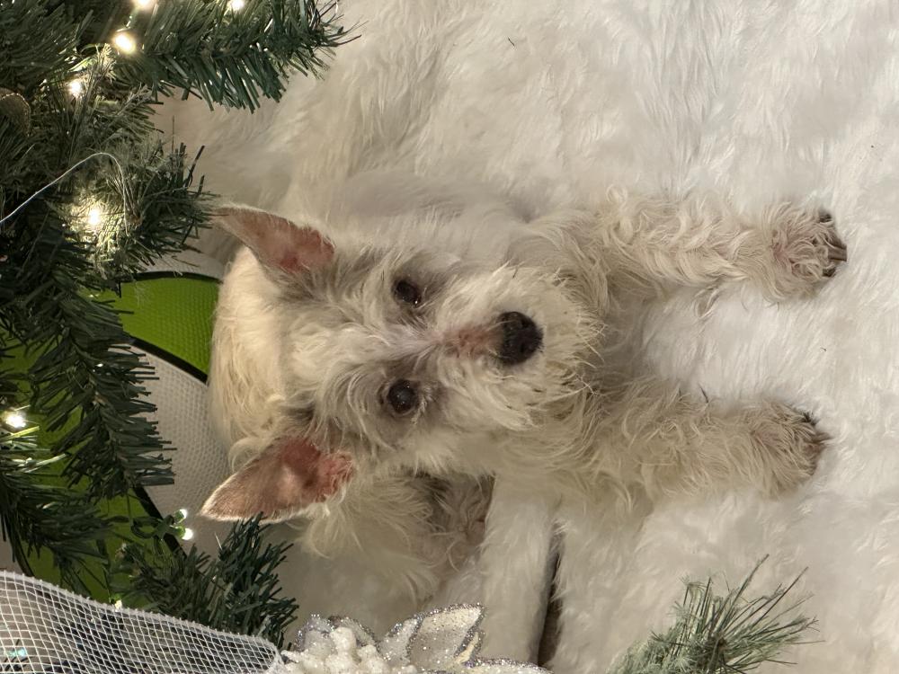 Pet Description:16 year old white miniature schnauzer. She has trouble hearing and seeing. She has no teeth. Did not have a color on. |