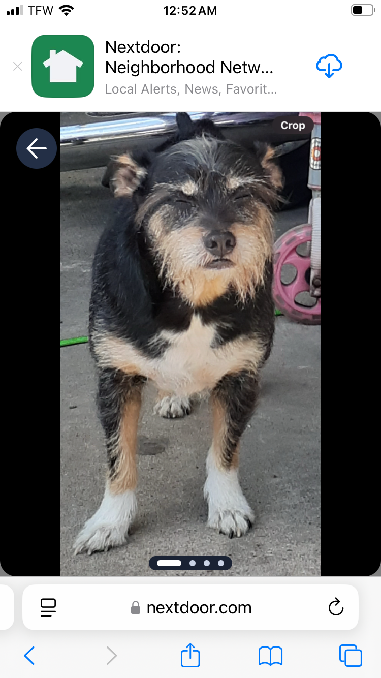 Pet Description:Jack is missing a few teeth also has a scar on his back and wiry hair. He mixed with chihuahua terrier and minpin. Jack is a very old dog also has a white tip on his tail |