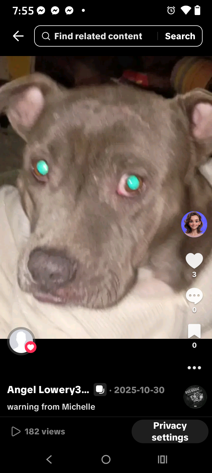 Pet Description:About 75 lbs kinda short pitbull grey with white belly , really friendly loves cats |