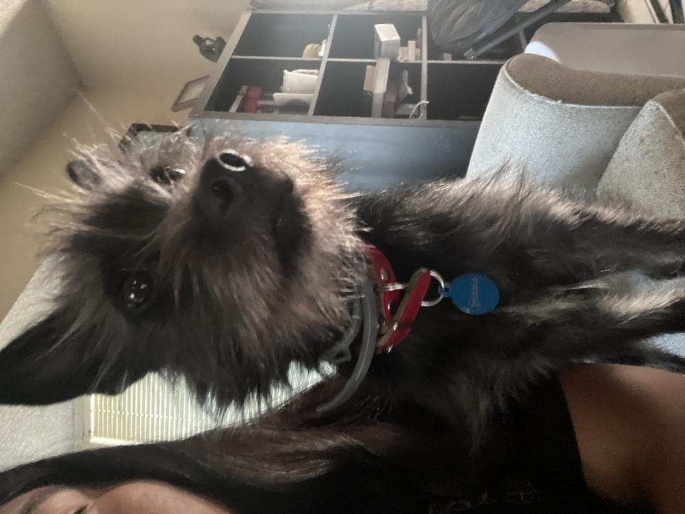 Pet Description:Luna is 4 years old, 15-18 pounds, primarily black fur with bits/shades of white. |