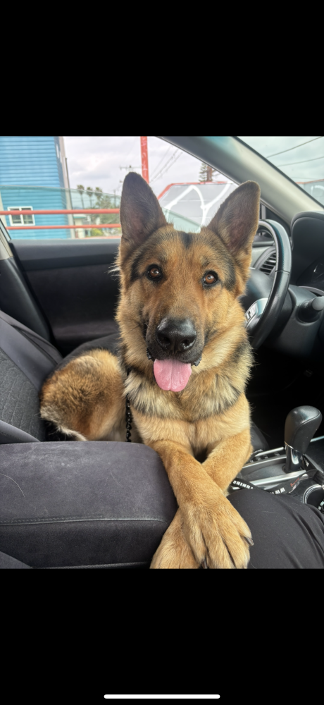 Pet Description:3 year German Shepherd weighs about 100 pounds dark brown eyes has some black spots on his tongue his back is all black. His face is mostly tan with a little bit of black, going to the top of his ears and forehead. The tip of his nose in mouth has a little bit of black very thick tail |