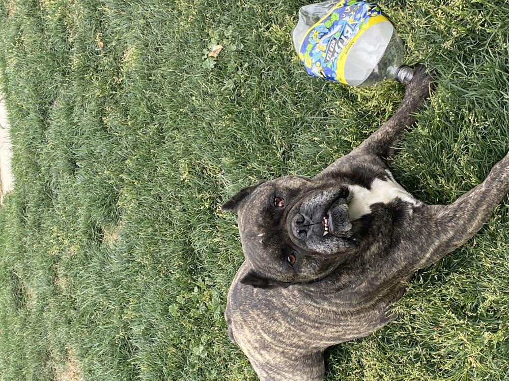 Pet Description:Medium size brindle and has a white belly with a little white mark in middle of forehead and a cherry eye |