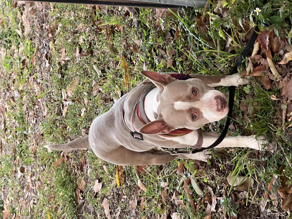 Pet Description:Very sweet girl found wearing a rainbow bandanna and a pink harness. |