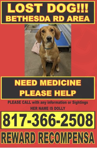 Pet Description:Dolly is 3 years old and weighs about 55 pounds She’s a tan hound with floppy hound ears and big brown eyes. She wasn’t wearing a collar but she IS MICROCHIPPED. She’s very friendly and barks a lot. Her sister and her humans miss her TERRIBLY!!! ?? |